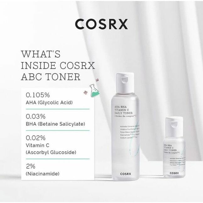 Cosrx-ийн Refresh AHA BHA витамин С-ийн найрлагатай өдөр тутмын тонер нь бүх төрлийн арьсанд тохирох, арьсыг толигор болгож, нөхөн төлжүүлэх үйлчилгээтэй. (AHA/BHA) хослол нь арьсны өө сэвийг багасгаж, арьсны өнгийг жигд болгож хялгасан үрчлээг багасгана. Тонер нь арьсны үхэжсэн эд эс болон илүүдэл тосыг арилгаж Витамин С найрлага нь антиоксидант бөгөөд арьсыг чөлөөт радикалууд болон хүрээлэн буй орчны сөрөг нөлөөллөөс хамгаалдаг.Энэхүү тонерийг тогтмол хэрэглэснээр хар толбо болон гиперпигментацийг багасгаж, ядарсан, өнгөө алдсан арьсыг эрүүл харагдуулна.
