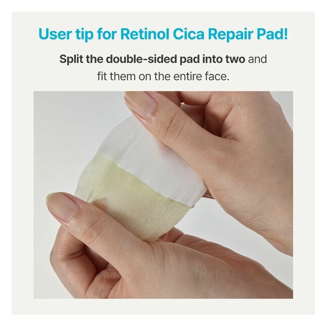 Хоёр талт pad: Ногоон тал – retinol + cica, цагаан тал – bamboo essence – чийгшүүлж, арьсыг бэлтгэнэ .