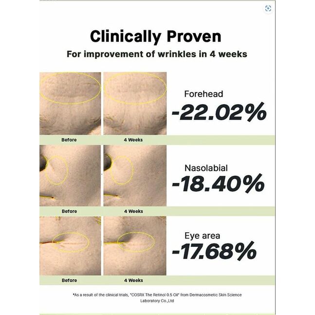 Өндөр концентрацтай цэвэр ретинол 0,5%-н агууламжтай ойл. Арьс өргөж чангалах, нүхжилт агшаах,арьсны уян хатан чанар дэмжих, үрчлээний эсрэг эрчимжүүлсэн үйлчилгээтэй.